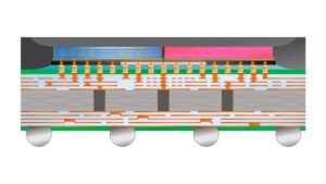 半導体パッケージ基板のイラストです。CoWoSをイメージしています。