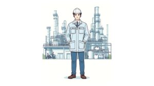 工場内で食事を取る技術者のイラストです。